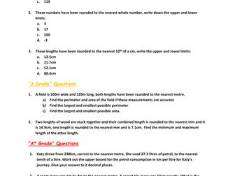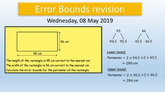 Bounds and Error Intervals | Teaching Resources File previews. pdf, 3.54 MB. Two levels :bounds of integers and bound of decimals. Please leave a comment if you spot any errors and I'll correct it, tout de suite.
