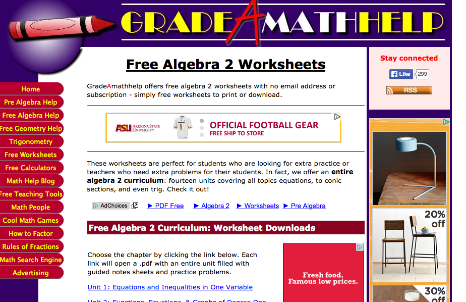Free printable math worksheets algebra 2